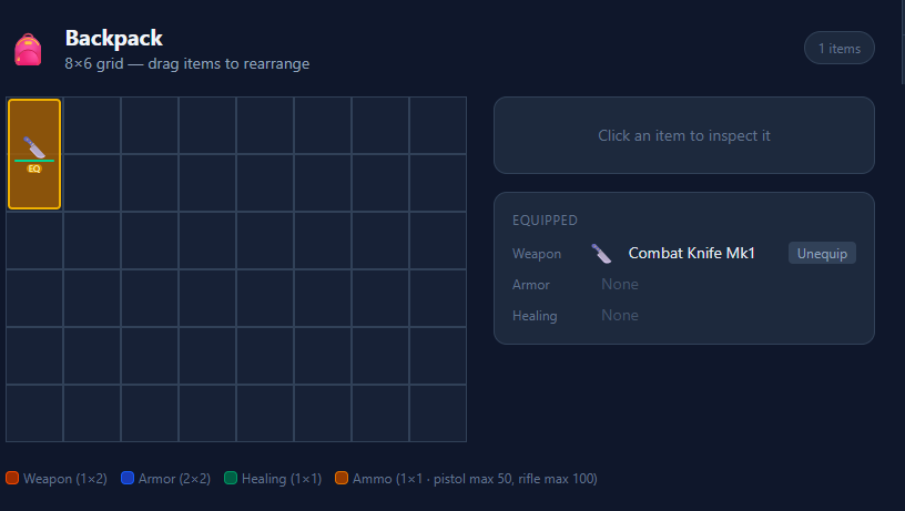 - Craft and upgrade weapons at the Forge — knives, axes, pistols, and rifles, each with four tiers